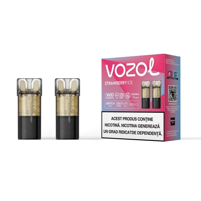 VOZOL SWITCH PRO STRAWBERRY ICE 0 NICOTINA este o narghilea electronica reincarcabila, preumpluta cu 2ml E-Liquid cu 0% nicotina suficient pentru a savura pana la 800 pufuri si are o aroma delicioasa de capsuni si efect racoritor (gheata). Vine echipata cu o baterie de reincarcabila, arome deosebite, design premium si culori stralucitoare. Sistemul inovator de atomizare si mustiucul ergonomic iti ofera un confort deosebit in timp ce vapezi.| Material | plastic PCR |