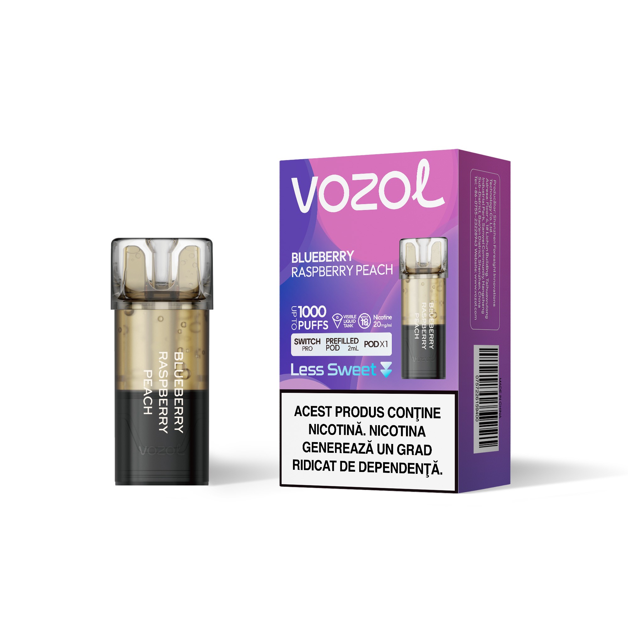 Cartus de unica folosinta SWITCH PRO BLUEBERRY RASPBERRY PEACH | VOZOL